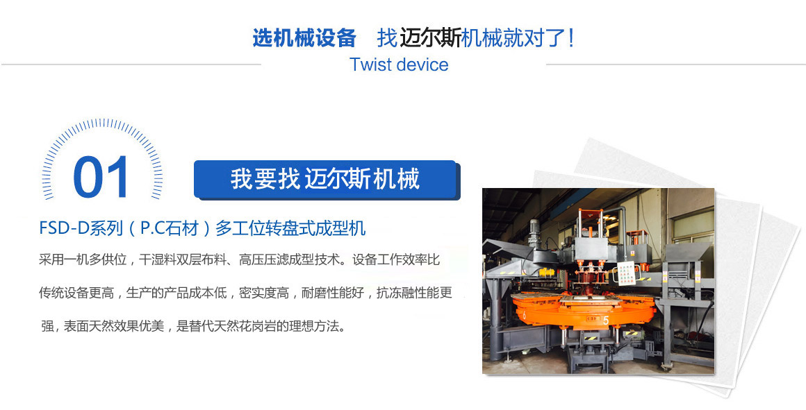 公司最初以生產(chǎn)320型、400型、500型、650型單工位模壓磚、瓦機(jī)為主,于2014年開(kāi)發(fā)出了三工位轉(zhuǎn)盤(pán)機(jī),而六工位轉(zhuǎn)盤(pán)機(jī)的研發(fā)成功,則是2017年,同年在大連客戶(hù)那里正式投入生產(chǎn)... |